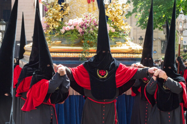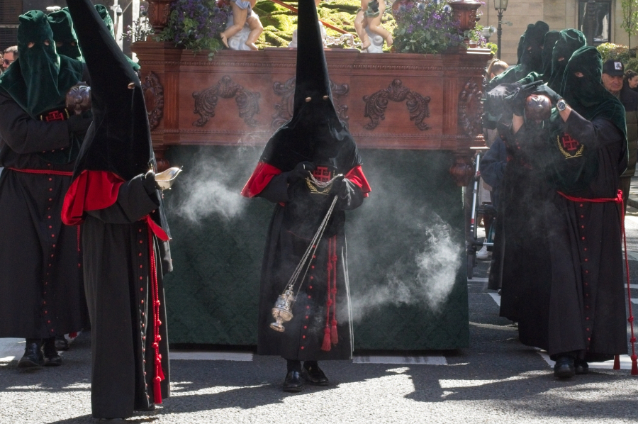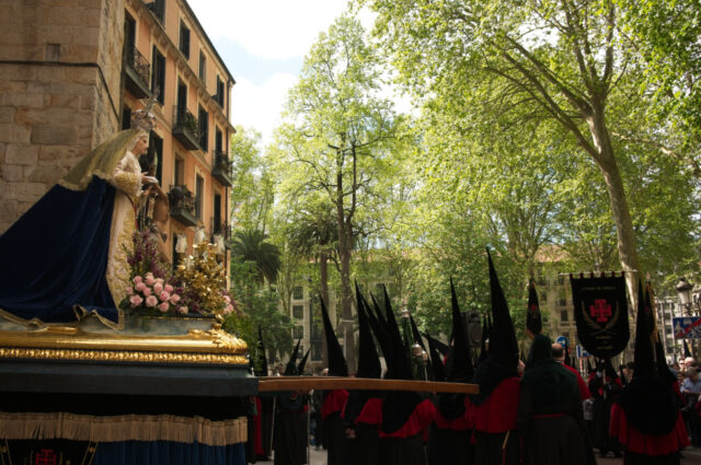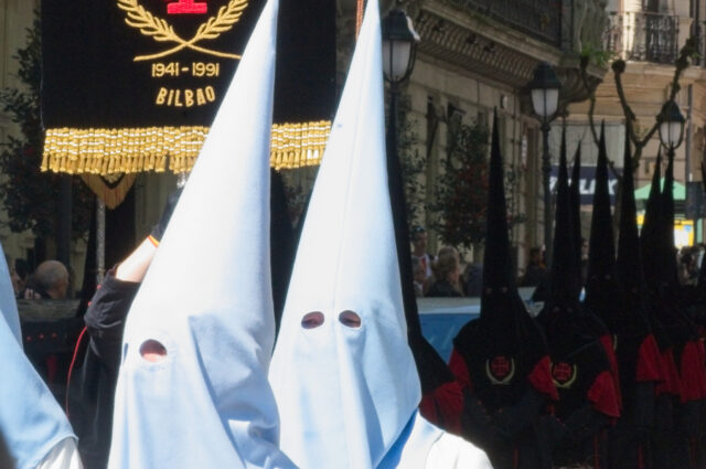 De paasprocessies in Spanje moet je echt één keer in je leven hebben meegemaakt. Dit jaar hebben wij rond deze periode enkele dagen in Bilbao doorgebracht. Het was een bijzondere ervaring om de stad in de sfeer van Pasen te zien. Elke dag waren er indrukwekkende processies met prachtige religieuze beelden, muziek en toegewijde deelnemers die de traditie in ere houden. De puntmutsen zijn ervoor om in anonimiteit boete te doen. Alhoewel de familie wel de lopers herkenden … mooi om mee te maken!