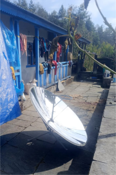 Een klein jaar geleden heb ik ruim 400 Euro opgehaald voor een goed doel in Nepal. Dat betreft zonnespiegels om eten te kunnen verwarmen. Afgelopen najaar was ik in Nepal en kon ik het uitzoekwerk van Bhakta zien. Voor een kleine 100 Euro was er al een zonnespiegel. Heb Bhakta geld gegeven om 2 spiegels te kopen en gevraagd voor fotos en videos. Tevens ook een video ontvangen. Bhakta was zeer enthousiast. Er zijn 12 gezinnen in zijn dorp die nu allemaal wel een solar disc willen hebben. Ga nu de rest van het opgehaalde geld sturen, aangevuld met mijn CO2 reductie bijdrage van afgelopen 2 jaar. Daarmee krijgt het dorp van Bhakta 6 zonne spiegels!
